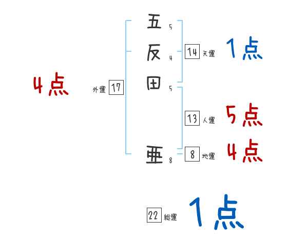 五反田亜さんの画数の鑑定結果