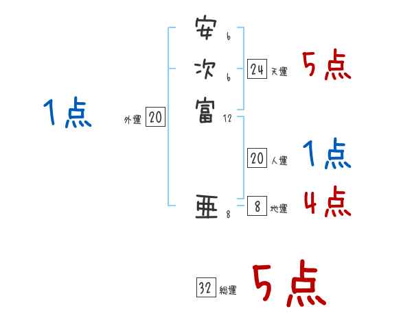 安次富亜さんの画数の鑑定結果
