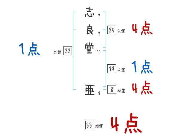 志良堂亜さんの画数の鑑定結果