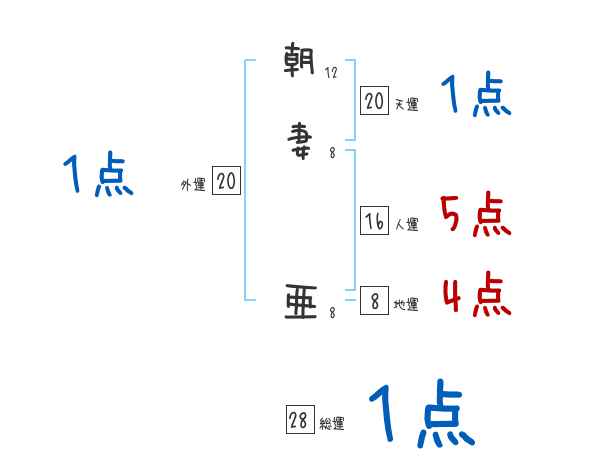 朝妻亜さんの画数の鑑定結果