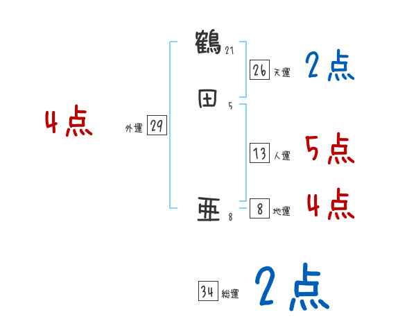 鶴田亜さんの画数の鑑定結果