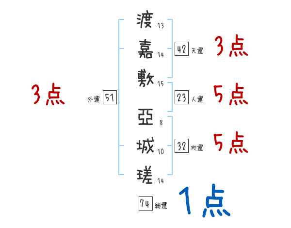 渡嘉敷亞城瑳さんの画数の鑑定結果