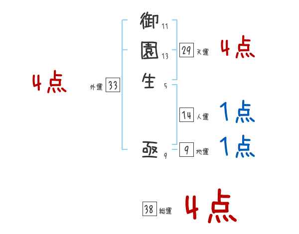 御園生亟さんの画数の鑑定結果