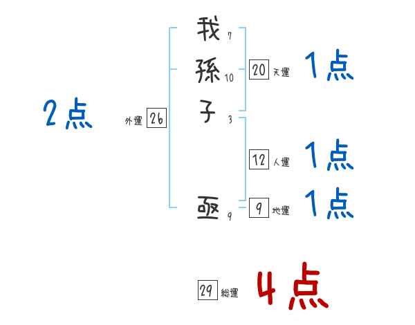 我孫子亟さんの総運は29画の4つ星