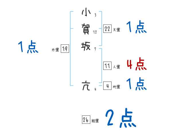 小賀坂亢さんの画数の鑑定結果