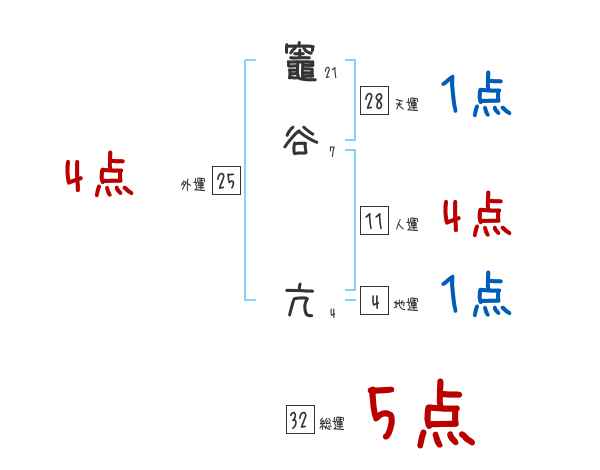 総運![]() | 竈谷亢さんの総運は32画の5つ星!柔軟性があり成功する。チャンスが多く金運が良い。 あなたの人生を表す1番重要な運勢です。生涯を通じて影響する総合運となり、主に50歳以降の晩年期に影響を及ぼします。 |
