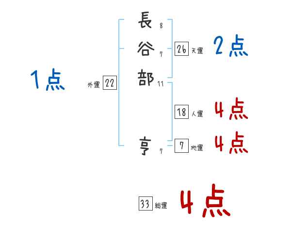 外運![]() | 長谷部亨さんの外運は22画の1つ星!努力することが苦手ないっぽう手先が器用。芸術性にも優れる。 生活面を象徴する運勢です。外部から受ける影響力を表し、結婚運、家庭運や職場、環境への順応性を表します。 |