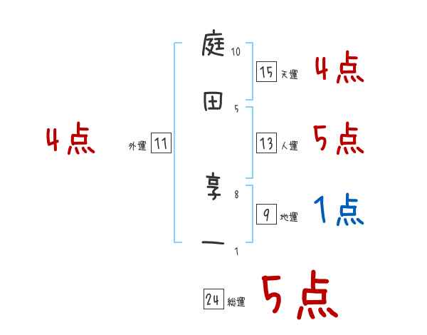 庭田享一さんの画数の鑑定結果