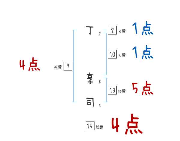 丁享司さんの画数の鑑定結果