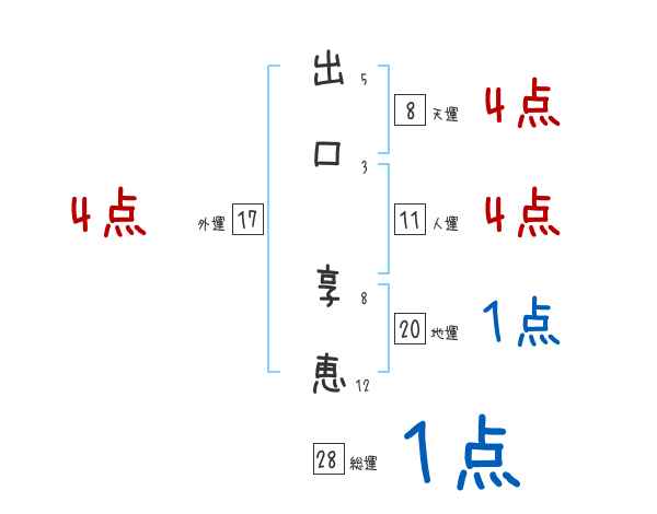 出口享恵さんの画数の鑑定結果