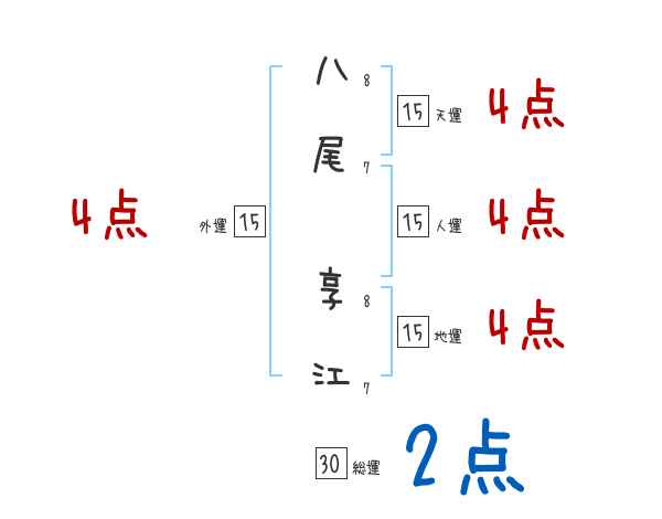 八尾享江さんの画数の鑑定結果