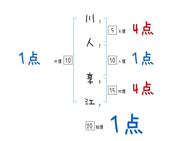 天運![]() | 川人享江さんの天運は5画の4つ星!健康で安泰。協調性に優れ、財産に恵まれる。 家系が持つ宿命的な運勢を表します。祖先から受け継いだ苗字ですので自分の力が及びません。家柄を象徴します。 |