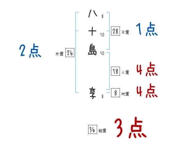 天運![]() | 八十島享さんの天運は28画の1つ星!家庭環境に注意。スポーツで活躍できる能力があるかも。 家系が持つ宿命的な運勢を表します。祖先から受け継いだ苗字ですので自分の力が及びません。家柄を象徴します。 |