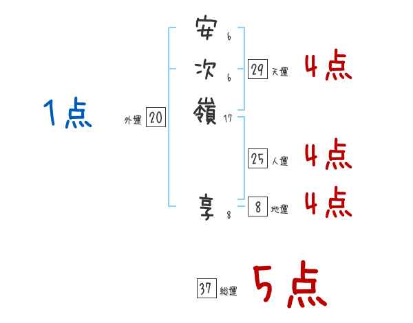 安次嶺享さんの画数の鑑定結果