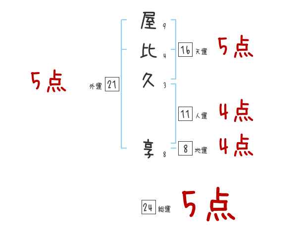 屋比久享さんの画数の鑑定結果