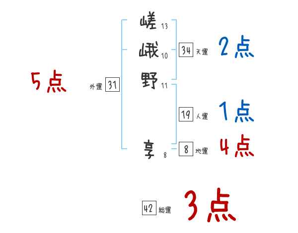 嵯峨野享さんの画数の鑑定結果