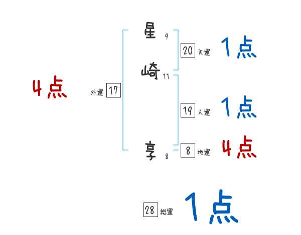 総運![]() | 星崎享さんの総運は28画の1つ星!家庭環境に注意。スポーツで活躍できる能力があるかも。 あなたの人生を表す1番重要な運勢です。生涯を通じて影響する総合運となり、主に50歳以降の晩年期に影響を及ぼします。 |
