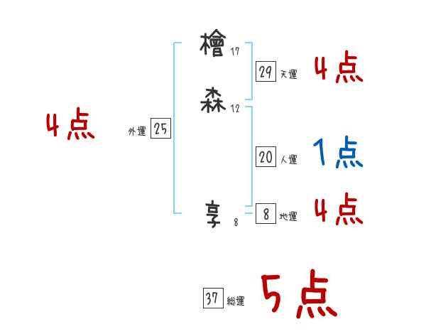 天運![]() | 檜森享さんの天運は29画の4つ星!完全主義で才能がある。厳格な心の持ち主。 家系が持つ宿命的な運勢を表します。祖先から受け継いだ苗字ですので自分の力が及びません。家柄を象徴します。 |