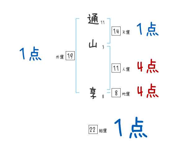 通山享さんの画数の鑑定結果