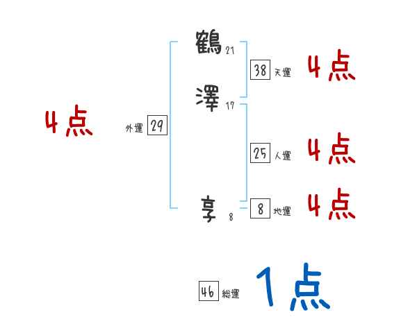 鶴澤享さんの画数の鑑定結果