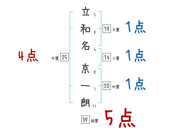 立和名京一朗さんの画数の鑑定結果
