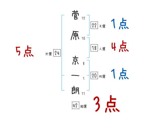 菅原京一朗さんの画数の鑑定結果