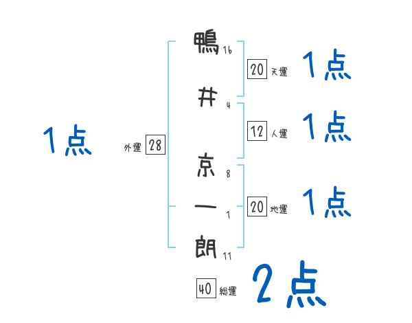 鴨井京一朗さんの画数の鑑定結果