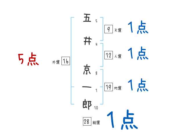 五井京一郎さんの画数の鑑定結果