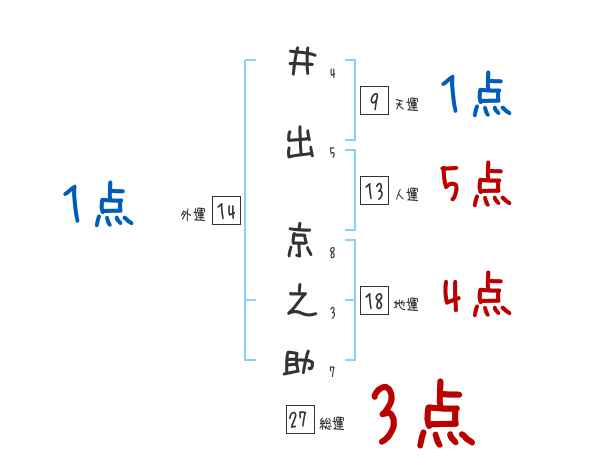 外運![]() | 井出京之助さんの外運は14画の1つ星!人に対して優しいがストレスを溜め込みがち。人間関係のトラブルを避けるよう気をつけましょう。 生活面を象徴する運勢です。外部から受ける影響力を表し、結婚運、家庭運や職場、環境への順応性を表します。 |