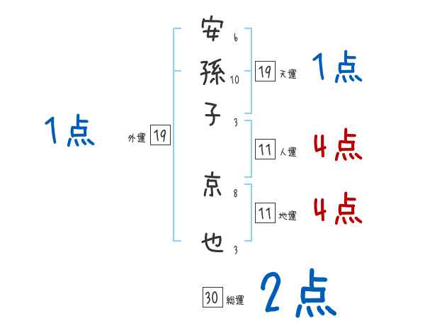 安孫子京也さんの画数の鑑定結果