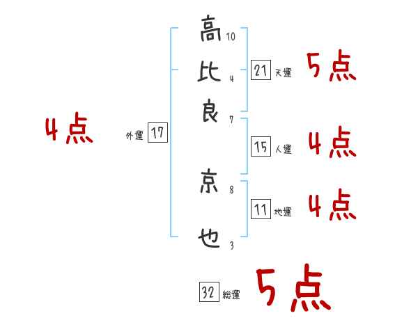 高比良京也さんの画数の鑑定結果