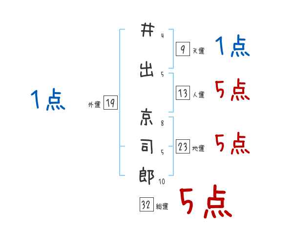 井出京司郎さんの画数の鑑定結果