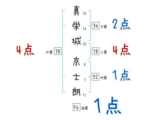 真栄城京士朗さんの画数の鑑定結果
