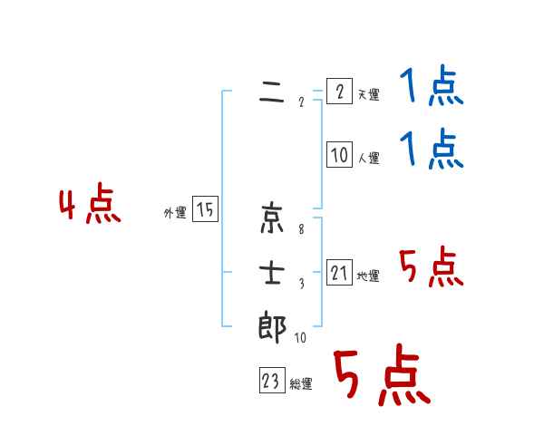 二京士郎さんの画数の鑑定結果