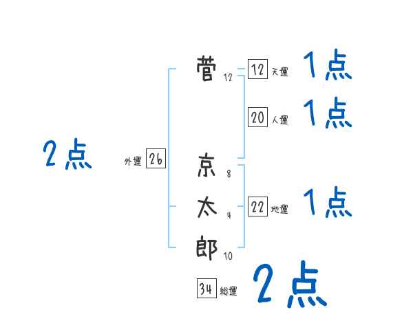 菅京太郎さんの画数の鑑定結果