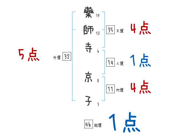 藥師寺京子さんの画数の鑑定結果