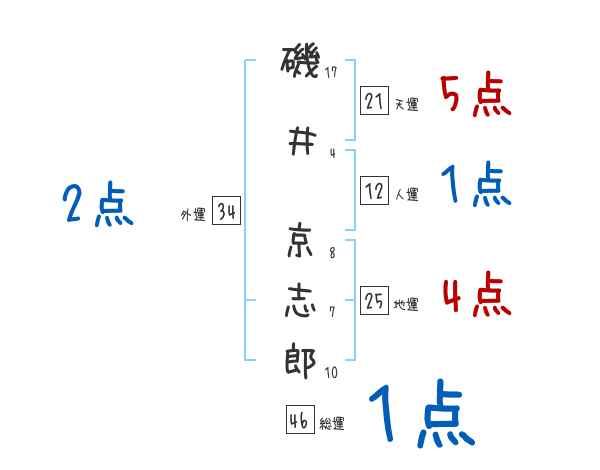 天運![]() | 磯井京志郎さんの天運は21画の5つ星!統率力がある。独立し成功する。名誉を手に入れる。 家系が持つ宿命的な運勢を表します。祖先から受け継いだ苗字ですので自分の力が及びません。家柄を象徴します。 |