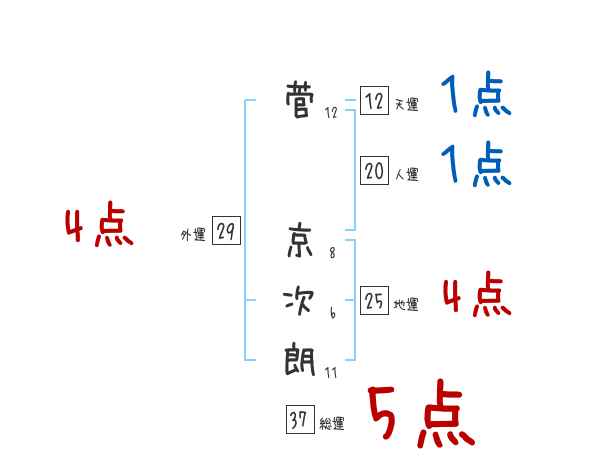 菅京次朗さんの画数の鑑定結果