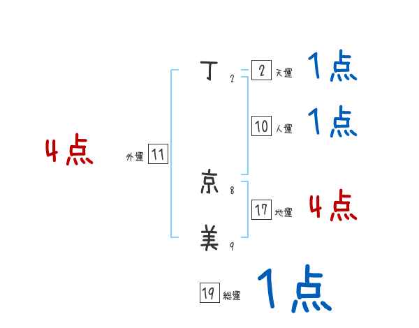 丁京美さんの画数の鑑定結果