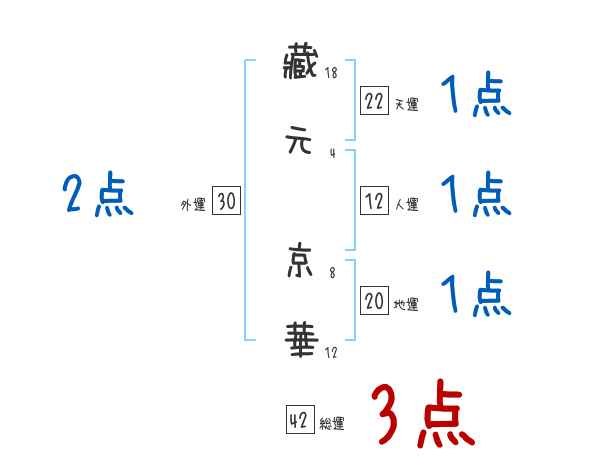 地運![]() | 藏元京華さんの地運は20画の1つ星!社交が苦手。人とは違った才能があり波乱万丈な人生かも。 個性を表す基礎的な運勢です。性格形成や対人関係、行動力など家庭環境に影響されます。主に誕生してから20歳くらいまでの若年期の運勢を表します。 |