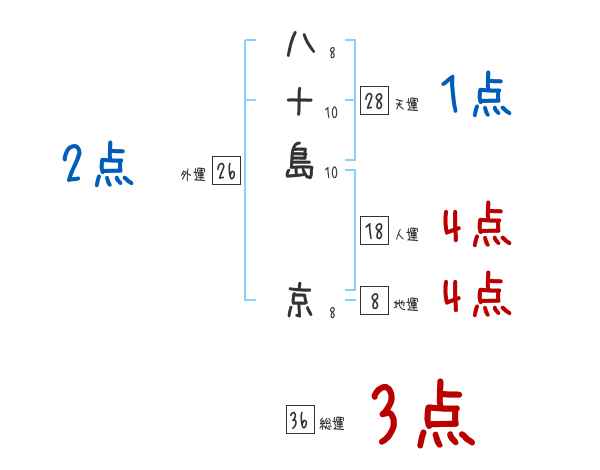 八十島京さんの画数の鑑定結果