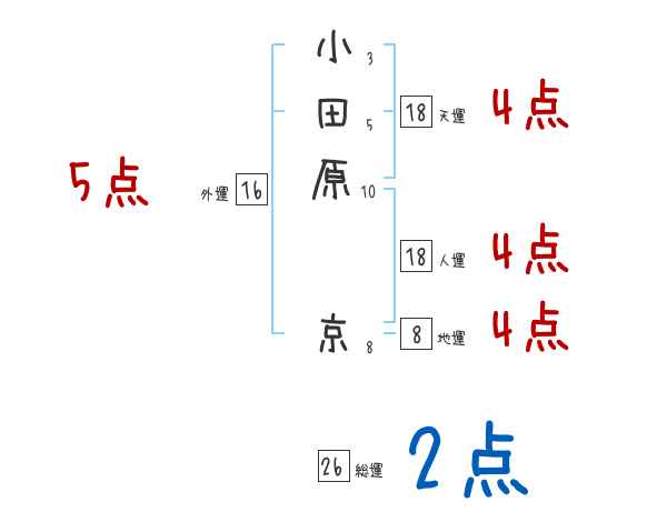 小田原京さんの画数の鑑定結果
