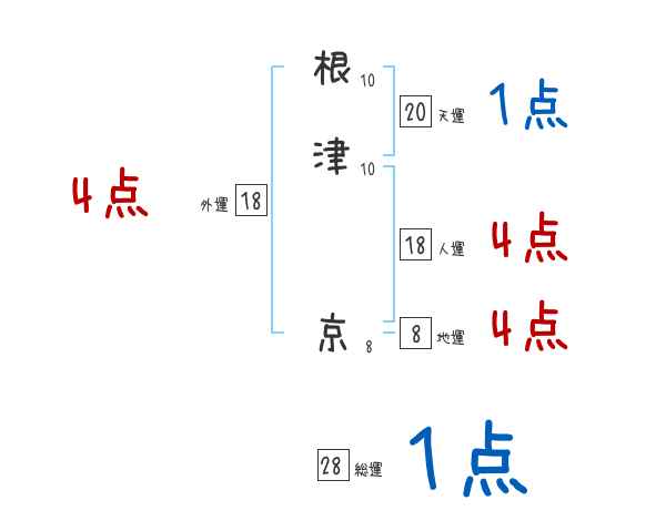 根津京さんの画数の鑑定結果