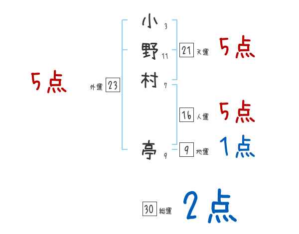 小野村亭さんの画数の鑑定結果