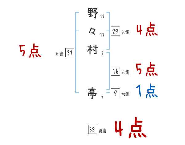 野々村亭さんの画数の鑑定結果