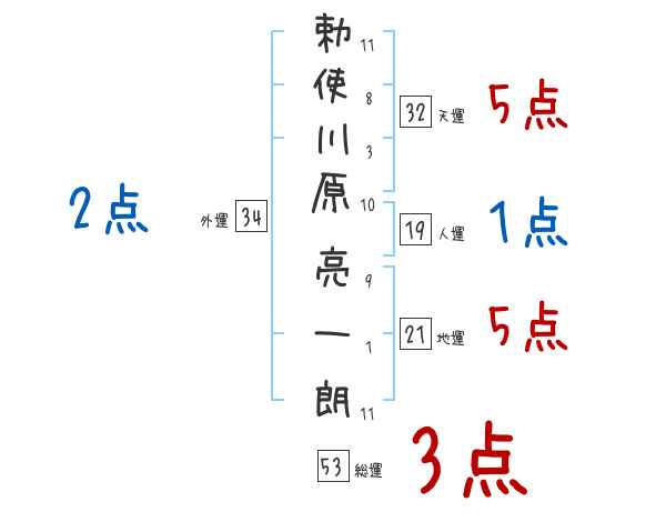 勅使川原亮一朗さんの画数の鑑定結果