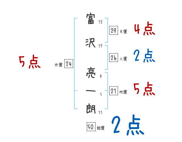富沢亮一朗さんの画数の鑑定結果