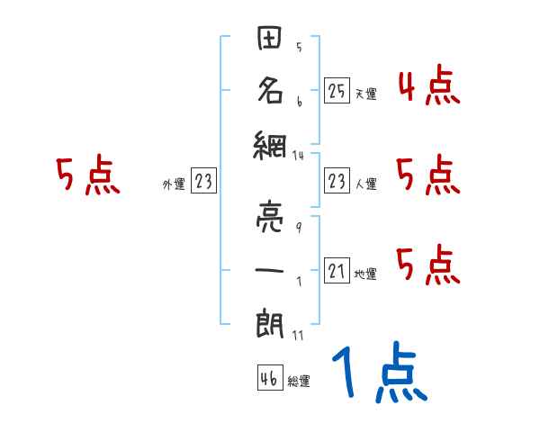 田名網亮一朗さんの画数の鑑定結果
