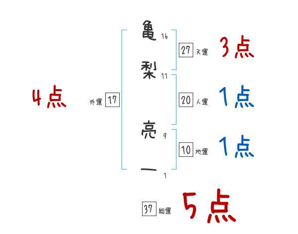 亀梨亮一さんの画数の鑑定結果