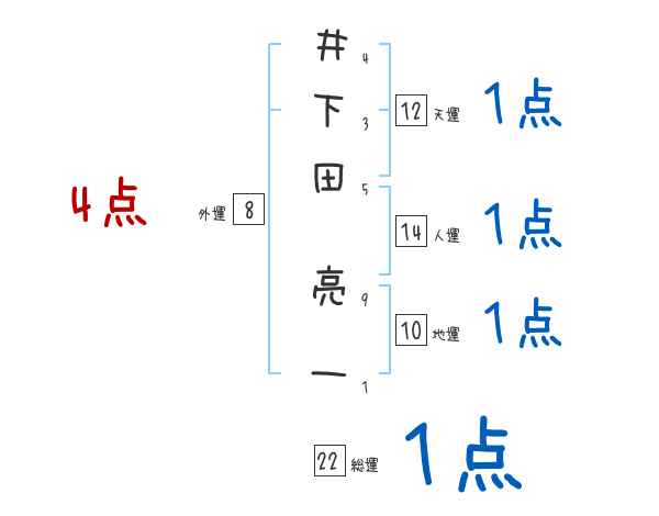 井下田亮一さんの画数の鑑定結果